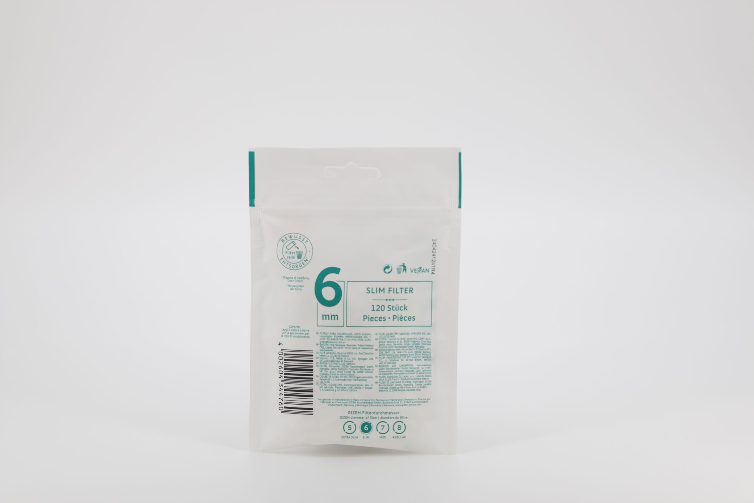 Die GIZEH Slim Filter Menthol bieten ein erfrischendes Raucherlebnis mit leichtem Mentholgeschmack. Mit einem Durchmesser von 6 mm sind sie ideal für Slim-Zigaretten und verleihen jeder Selbstgedrehten eine angenehme, kühle Note. In jeder Packung befinden sich 120 Filter.
