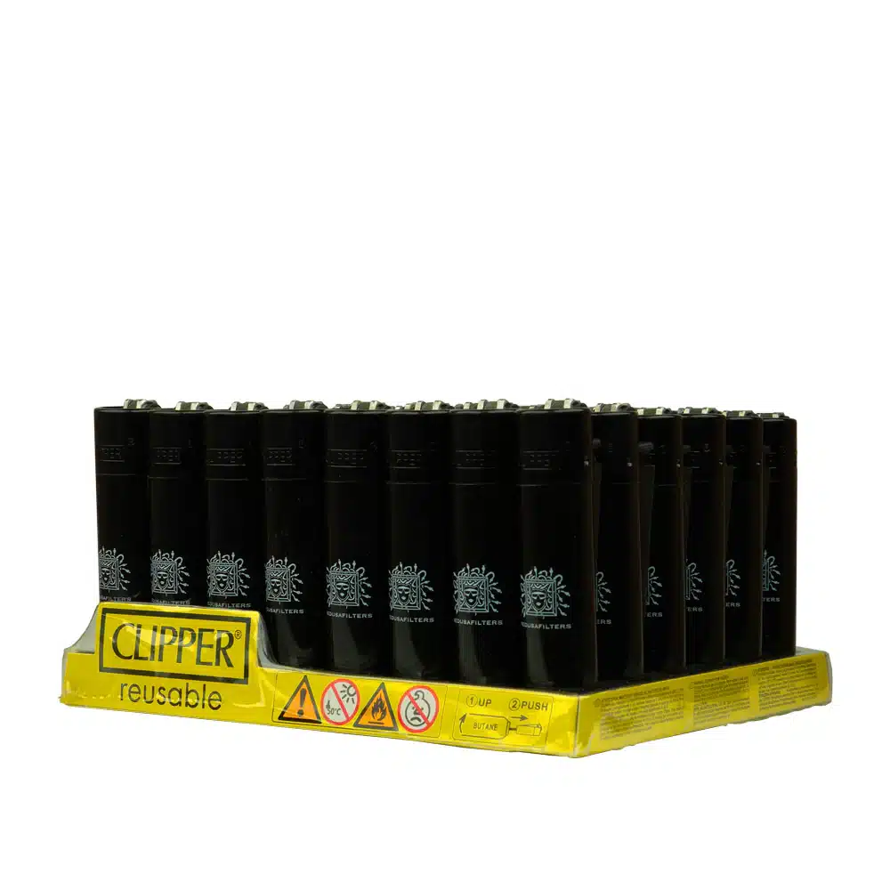 Das Medusa Logo CLIPPER VE48 enthält 48 Feuerzeuge der Marke CLIPPER in Zusammenarbeit mit Medusafilters. Das Feuerzeug besteht aus einem bruch- und feuerfesten Nylonkörper, der für seine besondere Langlebigkeit sorgt. Dank der cleveren Bauweise vergrößert sich die Flamme, wenn es nach unten geneigt wird, was in verschiedenen Situationen hilfreich sein kann. Der herausnehmbare Zündstift eignet sich ideal zum Nachstopfen von Selbstgedrehten. Zudem ist das CLIPPER® nachfüllbar und die Zündsteine können ausgetauscht werden, was es zu einer umweltfreundlichen Alternative zu Einwegfeuerzeugen macht. Die Feuerzeuge sind in den Farben Schwarz und Violett erhältlich.