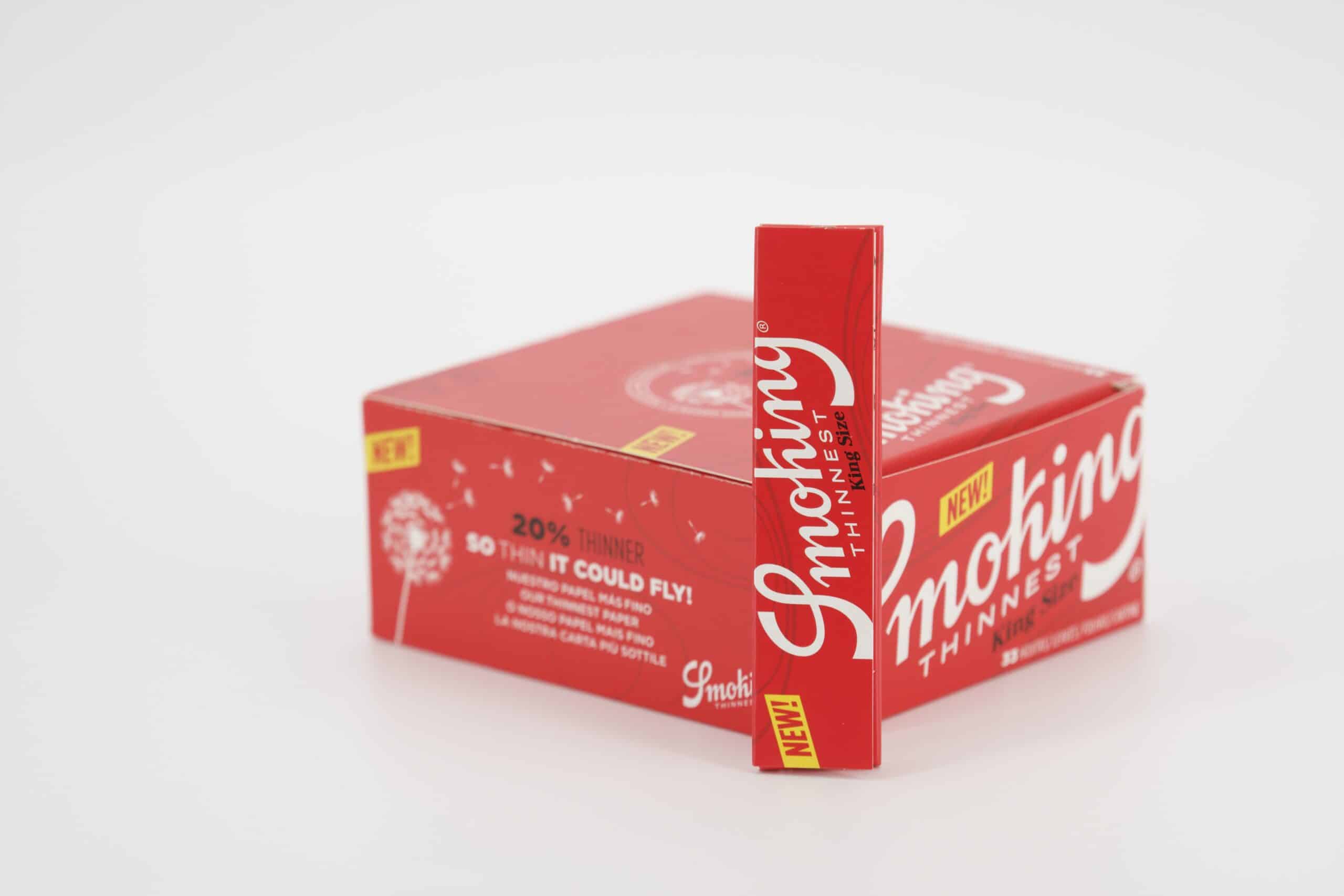 Die Smoking Thinnest King Size Slim 33 Papers VE50 bieten ultra-dünne, hochqualitative King Size Slim-Blättchen für anspruchsvolle Raucher. Mit einer Dicke von nur 10 g/m² garantieren sie ein nahezu papierloses Raucherlebnis und bewahren den reinen Geschmack. Umweltfreundlich hergestellt, FSC-zertifiziert und mit natürlichem Gummi arabicum versehen, vereinen sie Funktionalität und Nachhaltigkeit. Perfekt für Genießer, die auf höchste Qualität und ökologische Verantwortung setzen. Eine Box enthält 50 Booklets mit je 33 Papers.